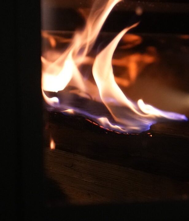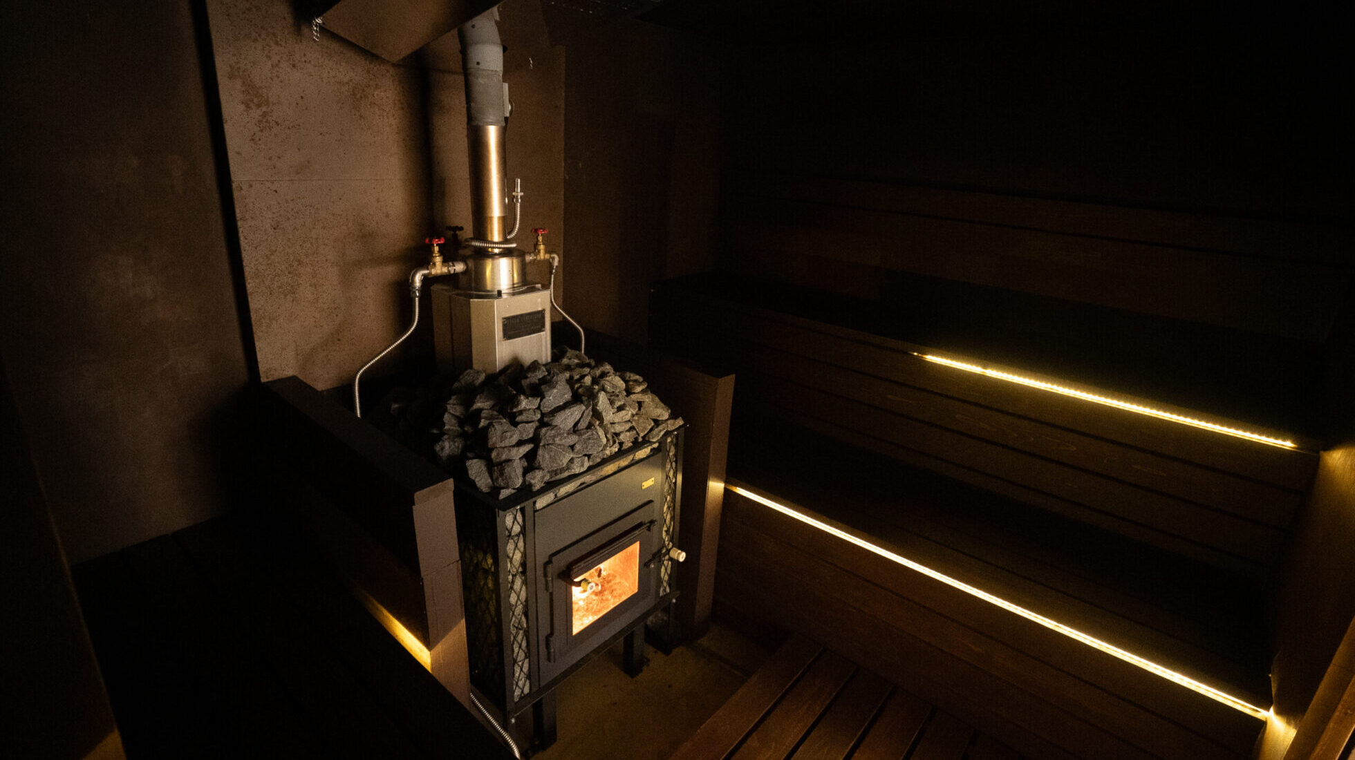 都心ではめずらしい薪ストーブサウナの火のゆらめきを眺め、