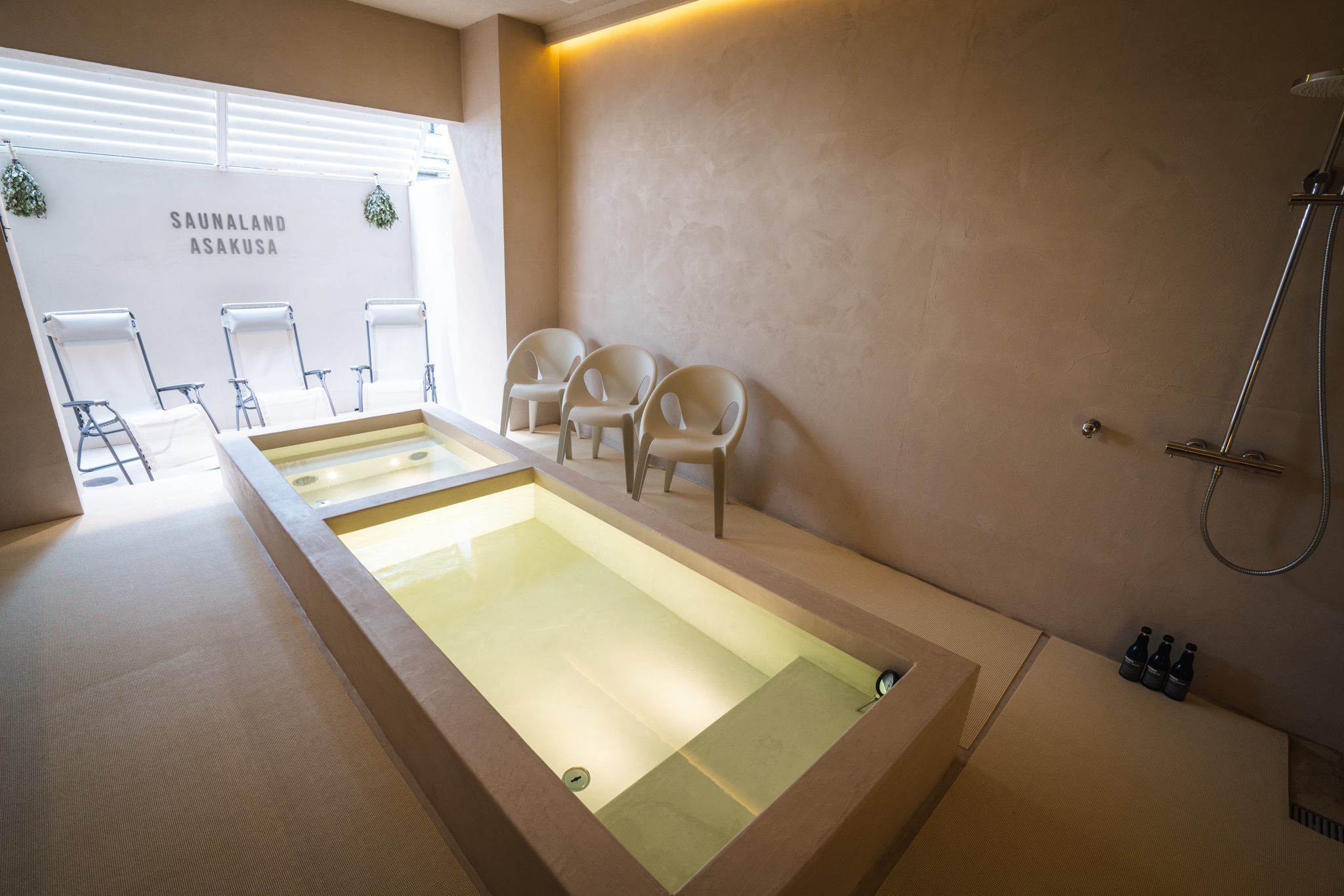 SAUNALAND ASAKUSAは、薪サウナを備えた完全貸切のプライベートサウナと、